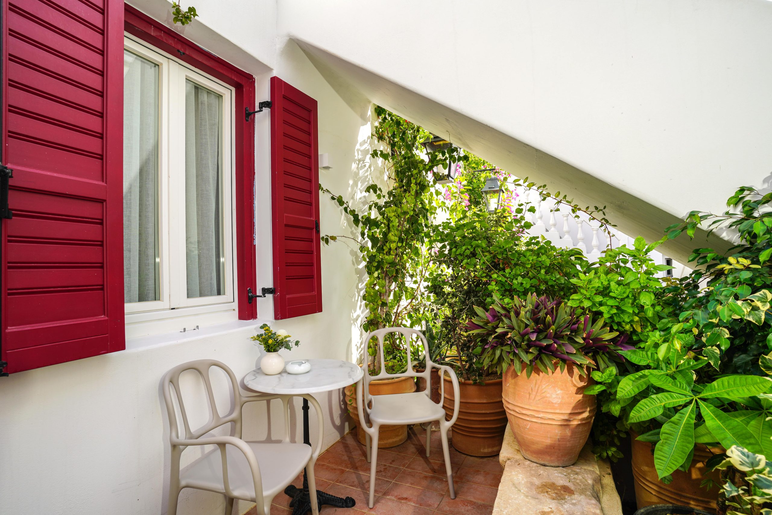 Well equipped room Stylishly decorated room in white tones with a small outdoor area, bathroom, TV, desktop, mini fridge and safety box.